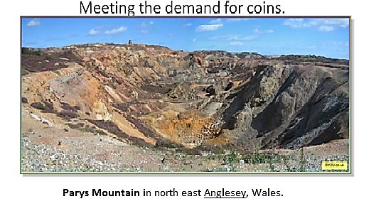 By the later 1780's, the mining operation (an open pit affair, conducted by blasting away the ore-rich face of Parys Mountain with gunpowder) was employing well over a thousand men locally, and many more at its rolling operations at Holywell, Flintshire.