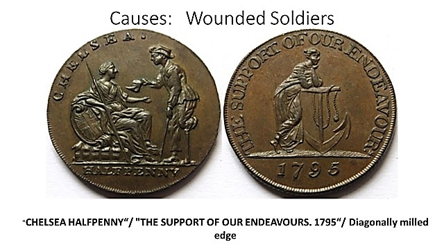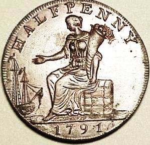 These coins usually had a bust on the obverse — often a likeness of King George III, or some other well-known figure — and a seated Britannia or a harp (for Ireland) on the reverse.