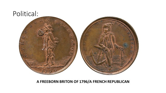 As they were designed and manufactured by the public, they were not limited by any rules or regulations. The tokens now tell a history of a people in a unique way. Through them, we can see a description of life in late 18th century Britain. We can see how they lived and worked through their commerce, politics, advertising, and even view their architecture