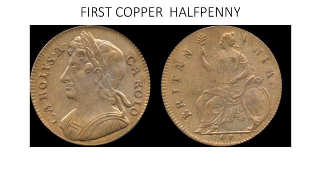 On Thursday August 1, 1672, Charles II announced the government would begin making copper small change coins in a proclamation entitled "A Proclamation for making currant His Majestie's Farthings and Half-pence of Copper, and forbidding all others to be used" .