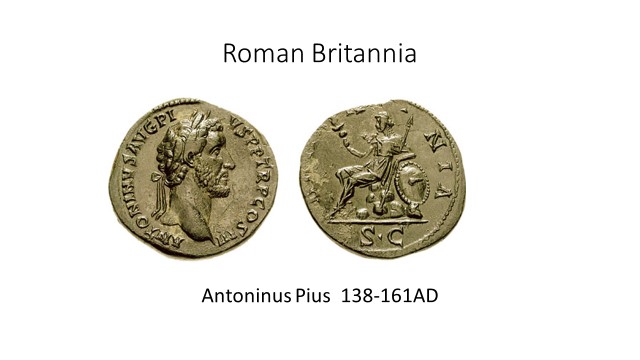 Almost 1,500 years earlier the figure of Britannia had been on the coins of the Roman Emperors. On the Charles II halfpenny Britannia made her re-appearance shown seated on a rock, facing left, with an olive branch in her right hand, a spear in her left hand, ( NB From 1797 onward she had a trident to emphasise that we are a Naval power ) and a shield leaning against the rock. The English coin shield bears a Union flag. The design of this portrayal of Britannia are clearly inspired by the earlier Roman Britannias. She stayed on British coinage in until 2008. Then, for the first time in over 300 years, she no longer featured on British circulating coinage.