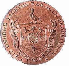 Sir George Jackson, who in 1795 issued the Stortford Halfpenny token for use on the Stort Navigation and made it redeemable for conventional money at the company’s offices at Swan Dock. The tokens were originally produced at the Soho Mint in Birmingham..